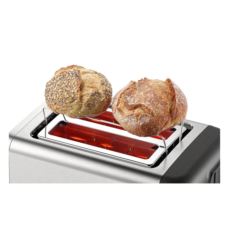 توستر بوش مدل TAT3P420 یک محصول توانمند برای یخزدایی، برشته کردن و جهت گرم کردن مجدد نان وعدههای مختلف غذایی شما است. این دستگاه یک انتخاب ایدهآل جهت ترد و تازه کردن نانهای صبحانه شما است. بوش یک نام شناخته شده و مورد اعتماد مردم است زیرا همیشه برای محصولات خود از بهروزترین طراحیها و تکنولوژیها استفاده میکند. توان مصرفی 970 واتی این توستر به شما در گرم کردن انواع نان با بافتهای گوناگون در ضخامتهای مختلف کمک میکند تا با استفاده از آن از یک نان خوشمزه و لذید نهایت لذت را ببرید. با بکارگیری سیستم المنت گرمایشی سطح بزرگ و قابلیت تغییر میزان دما در 6 سطح مختلف اقدام به گرم کردن و تست کردن نان آنطور که باب میلتان است کنید. سیستم برشته کردن نان به صورت متمرکز برای برشته شدن یکسان هر دو طرف نان از جمله مزایای تولید این محصول است. تعداد درگاه قرارگیری نان 2 عدد است تا با استفاده از آن 2 عدد برش نان را برای خود تست کنید. با استفاده از درگاه نگهداری نان و دکمه تعبیه شده اقدام به قرار دادن نان در درون دستگاه کنید تا بتوانید از یک نان برشته و تازه نهایت لذت را ببرید. بعد از اتمام فرآیند با استفاده از همان دکمه اقدام به خارج کردن نانهای تست شده خود کنید و یا منتظر بشوید تا به صورت خودکار بعد از اتمام فرآیند نانها برای شما به صورت خودکار خارج شود. نانها به اندازه استاندارد بالا آمده تا به آسانی اقدام به برداشتن آنها کنید. یک کنترل پنل ساده با کلید چرخشی با 6 حالت کنترل و تنظیم میزان برشته شدن نان، دکمه توقف با نشانگر LED و دکمه یخ زدایی نان با نشانگر LED از جمله دکمههای تعبیه شده برای این محصول است. برای جلوگیری از بروز هرگونه حادثه شرکت بوش از قابلیت خاموش شدن خودکار و یک پایه ضد لغزش پلاستیکی استفاده کرده است تا بهوسیله آن یک تجربه عالی را به دور از هرگونه نگرانی تجربه کنید. محفظه برای جمع کردن کابل برق به شما در حفظ و نگهداری این محصول کمک میکند و از پاره شدن و آسیب رسیدن به آن جلوگیری میکند.