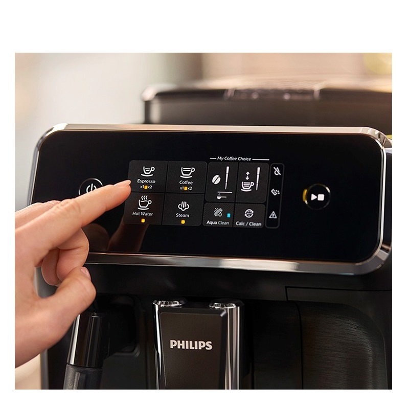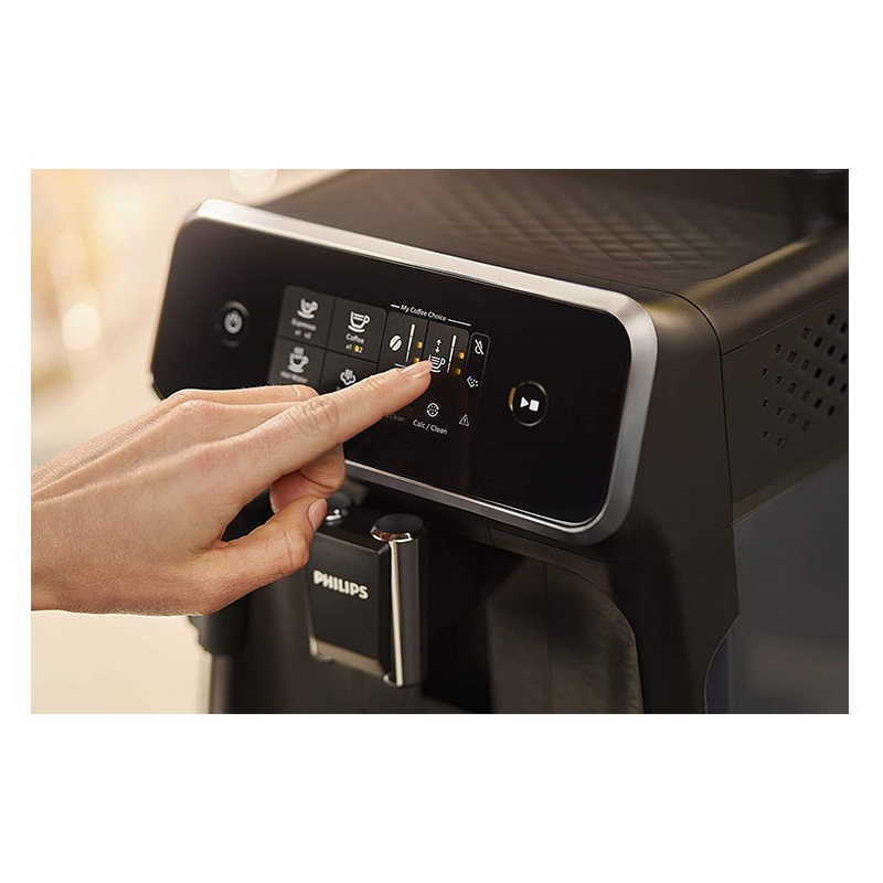 هشدار صوتی خالی بودن مخزن آب برای جلوگیری از آسیب رسیدن به دستگاه، هشدار صوتی برای گیر کردن دانه و یا پودر قهوه در داخل مخزن و سیستم ایمنی خاموش شدن برای جلوگیری از بروز حادثه به شما امکان استفاده از این دستگاه را با خاطر آسوده میدهد. اسپرسوساز تمام اتوماتیک EP2220 شرکت Philips با طراحی جذاب، رنگ آمیزی مشکی، نمایشگر دیجیتال و صفحه کنترل لمسی به جذابیت این دستگاه میافزاید و همچنین زیبایی دوچندانی به محیط آشپزخانه منزل شما میبخشد. فاصله ایدهآل نازل اسپرسو تا لیوان موجب میشود تا طیف گستردهای از لیوانها را بتوانید مستقیم به زیر نازل ببرید و نوشیدنی خود را آماده کنید. قابلیت نوردهی کلیدها به شما این امکان را میدهد تا در تاریکی نیز بتوانید بدون ایجاد مزاحمت برای کسی از نوشیدن یک لیوان قهوه لذیذ لذت ببرید. صفحه گرم نگه دارنده فنجانها آخرین موردی است که شرکت فیلیپس برای شما تعبیه کرده است، برای درست کردن یک لیوان لته لذیذ دیگر نیاز به گرم کردن لیوان با آب جوش نیست و میتوانید پیش از درست کردن آن، لیوان خود را روی صفحه گرم نگهدارنده قرار دهید تا لته شما در دمای ایدهآل آماده گردد.