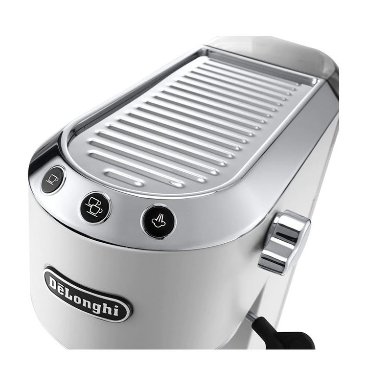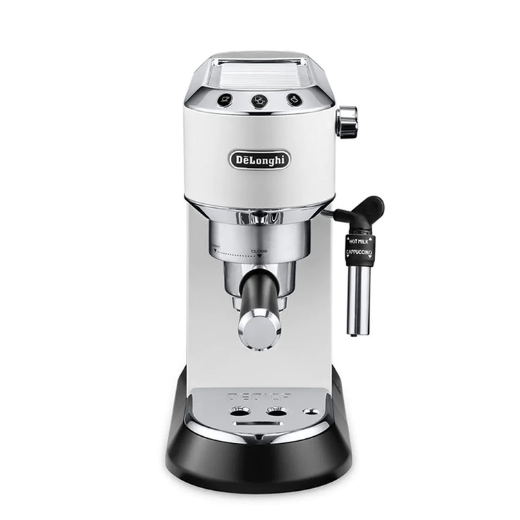 شرکت DELONGHI در سری محصولات DEDICA برای تهیه انواع نوشیدنیهای پایه اسپرسو با بهروزترین تکنولوژیها به یاری شما آمده است. با کمک دکمههای تعبیه شده در این دستگاه توانایی گرفتن اسپرسو برای یک نفر یا اسپرسو سینگل و همچنین با تعویض فیلتر پرتابل میتوانید برای 2 نفر یا اسپرسو دوبل تهیه کنید. با استفاده از دکمه نازل بخار (STEAMER) از شیر، فوم و کف با غلظت مناسب و دلخواه بگیرید تا از کاپوچینو، لته، موکا و… خود لذت دوچندان ببرید. همیشه در نظر داشته باشید که بعد از استفاده دهانه STEAMER نازل که بخار از آن خارج میشود را با استفاده از حولهای لطیف و بخار خود دستگاه پاک گردانید. این امر موجب شده تا دهانه نازل بخار اسپرسوساز آسیب نبیند. در برنامههای پیشفرض قابلیت تنظیم دما، خاموش شدن خودکار و تنظیم سختی آب از طریق منو کاربری وجود دارد که در دفترچه راهنما به طور کامل توضیح داده شده است و با مطالعه آن میتوانید از داشتن و کار کردن با EC685.W نهایت رضایت را تجربه کنید. کنترل دما در سه سطح کم، متوسط و زیاد قابل انجام خواهد بود. همچنین به منظور تنظیم خاموش شدن خودکار دستگاه بعد از انجام فرایند، سه بازه زمانی 9 دقیقه، 30 دقیقه و 3 ساعت برای دستگاه برنامهریزی شده است.