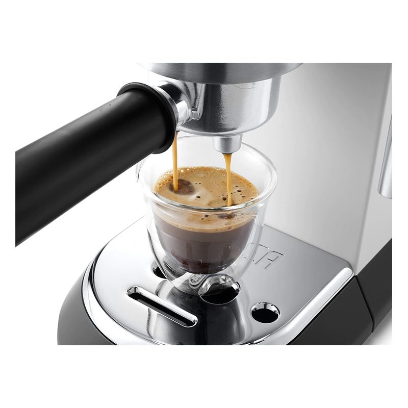 شرکت DELONGHI در سری محصولات DEDICA برای تهیه انواع نوشیدنیهای پایه اسپرسو با بهروزترین تکنولوژیها به یاری شما آمده است. با کمک دکمههای تعبیه شده در این دستگاه توانایی گرفتن اسپرسو برای یک نفر یا اسپرسو سینگل و همچنین با تعویض فیلتر پرتابل میتوانید برای 2 نفر یا اسپرسو دوبل تهیه کنید. با استفاده از دکمه نازل بخار (STEAMER) از شیر، فوم و کف با غلظت مناسب و دلخواه بگیرید تا از کاپوچینو، لته، موکا و… خود لذت دوچندان ببرید. همیشه در نظر داشته باشید که بعد از استفاده دهانه STEAMER نازل که بخار از آن خارج میشود را با استفاده از حولهای لطیف و بخار خود دستگاه پاک گردانید. این امر موجب شده تا دهانه نازل بخار اسپرسوساز آسیب نبیند. در برنامههای پیشفرض قابلیت تنظیم دما، خاموش شدن خودکار و تنظیم سختی آب از طریق منو کاربری وجود دارد که در دفترچه راهنما به طور کامل توضیح داده شده است و با مطالعه آن میتوانید از داشتن و کار کردن با EC685.W نهایت رضایت را تجربه کنید. کنترل دما در سه سطح کم، متوسط و زیاد قابل انجام خواهد بود. همچنین به منظور تنظیم خاموش شدن خودکار دستگاه بعد از انجام فرایند، سه بازه زمانی 9 دقیقه، 30 دقیقه و 3 ساعت برای دستگاه برنامهریزی شده است.