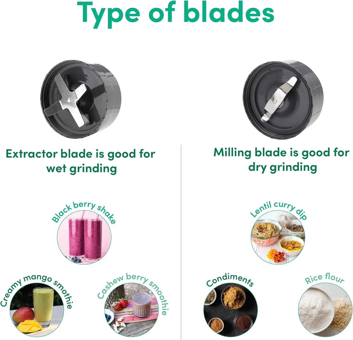 آنچه دریافت می کنید: (1) پایه موتور 600 وات، (1) تیغه استخراج، (1) تیغه فرز، (1) فنجان 700 میلی لیتر، (1) فنجان 500 میلی لیتر، (1) فنجان 500 میلی لیتری با دسته، (1) حلقه لبه، (1) حلقه لب با دسته، (2) درب جامد، (1) راهنمای کاربر، (1) کتاب دستور غذا.