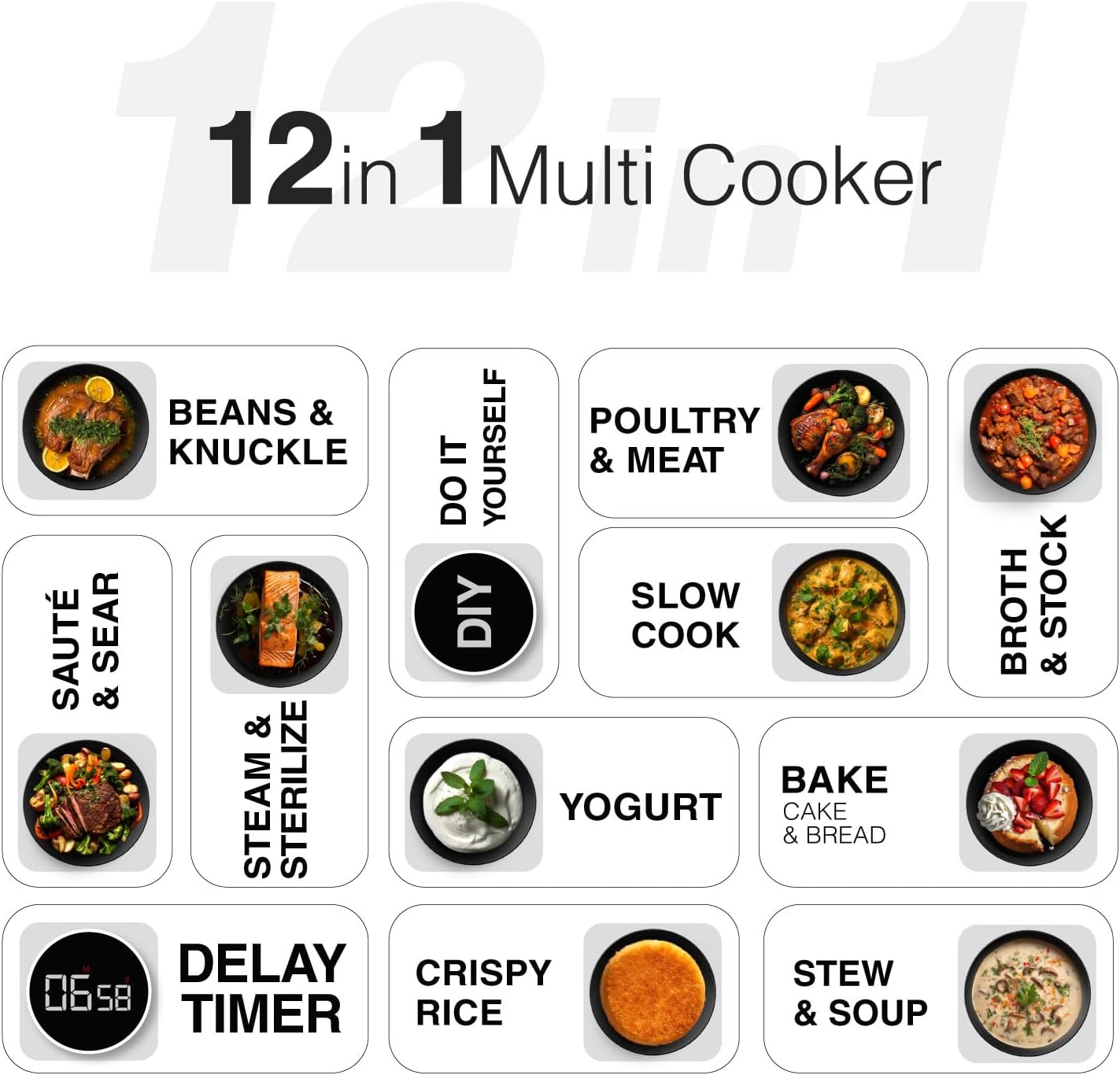 برنامه ها: پخت غذا، آبگوشت، خورشت، پخت ته دیگ، ماست ساز، گوشت، کیک، مرغ، ماهیچه، حبوبات، آرام پز، زودپز، پنیر، سرخ کردن