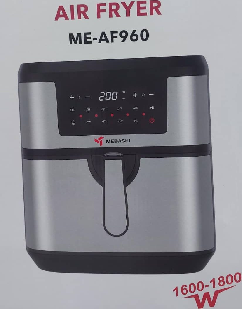 مشخصات کلی نوع بدون روغن ظرفیت ۹.۲ لیتر توان مصرفی ۱۸۰۰ وات مدل ME-AF۹۶۰ برند مباشی رنگ نقره ای توان مصرفی 1800 وات نوع دستگاه سرخ کن بدون روغن ظرفیت مخزن ۹.۵ لیتر صفحه نمایش لمسی سیستم قطع کن خودکار دارد قابلیت تنظیم دما و زمان دارد ده برنامه پخت دارد گنجایش دو مرغ بزرگ نشانگر آماده به پخت دارد جنس بدنه استیل