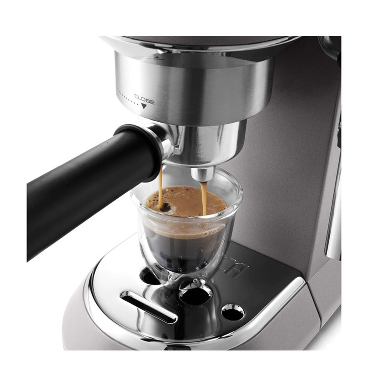 شرکت DELONGHI در سری محصولات DEDICA برای تهیه انواع نوشیدنیهای پایه اسپرسو با بهروزترین تکنولوژیها به یاری شما آمده است. با کمک دکمههای تعبیه شده در این دستگاه توانایی گرفتن اسپرسو برای یک نفر یا اسپرسو سینگل و همچنین با تعویض فیلتر پرتابل میتوانید برای 2 نفر یا اسپرسو دوبل تهیه کنید. با استفاده از دکمه نازل بخار (STEAMER) از شیر، فوم و کف با غلظت مناسب و دلخواه بگیرید تا از کاپوچینو، لته، موکا و… خود لذت دوچندان ببرید. همیشه در نظر داشته باشید که بعد از استفاده دهانه STEAMER نازل که بخار از آن خارج میشود را با استفاده از حولهای لطیف و بخار خود دستگاه پاک گردانید. این امر موجب شده تا دهانه نازل بخار اسپرسوساز آسیب نبیند. در برنامههای پیشفرض قابلیت تنظیم دما، خاموش شدن خودکار و تنظیم سختی آب از طریق منو کاربری وجود دارد که در دفترچه راهنما به طور کامل توضیح داده شده است و با مطالعه آن میتوانید از داشتن و کار کردن با EC 785.GY نهایت رضایت را تجربه کنید. کنترل دما در سه سطح کم، متوسط و زیاد قابل انجام خواهد بود. همچنین به منظور تنظیم خاموش شدن خودکار دستگاه بعد از انجام فرایند، سه بازه زمانی 9 دقیقه، 30 دقیقه و 3 ساعت برای دستگاه برنامهریزی شده است.