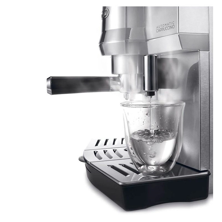 برند دلونگی برای تهیه انواع نوشیدنیهای پایه اسپرسو با بهروزترین تکنولوژیها به یاری شما آمده است. با کمک دکمههای تعبیه شده در این دستگاه توانایی گرفتن اسپرسو برای یک نفر یا اسپرسو سینگل و همچنین با تعویض پرتافیلتر برای ۲ نفر یا اسپرسو دوبل را دارید. تعبیه دکمههای جداگانه برای تولید کف شیر کاپوچینو، فوم شیر برای تهیه لاته ماکیاتو و دکمه آب جوش کار با این دستگاه را برای همه افراد با هر سطح مهارتی آسان کرده است. همیشه در نظر داشته باشید که بعد از استفاده دهانهای که شیر از آن خارج میشود را با استفاده از حولهای لطیف و بخار خود دستگاه پاک کنید. این امر موجب شده تا دهانه نازل بخار اسپرسوساز آسیب نبیند. در برنامههای پیشفرض قابلیت تنظیم دما، خاموش شدن خودکار و تنظیم سختی آب از طریق منو کاربری نیز وجود دارد. کنترل دمای انجام فرایند نیز در سه سطح کم، متوسط و زیاد قابل انجام خواهد بود. همچنین تنظیمات خاموش شدن خودکار دستگاه بعد از انجام فرایند و عدم استفاده پس از مدت ۱۵ دقیقه، ۷۵ دقیقه و ۳ ساعت امکانپذیر خواهد بود.