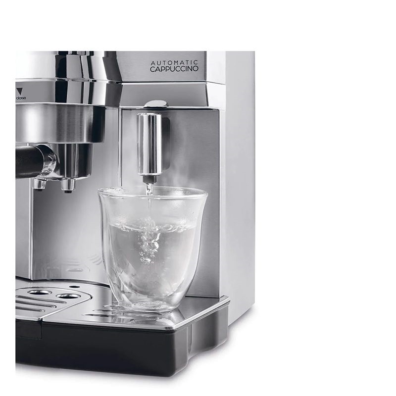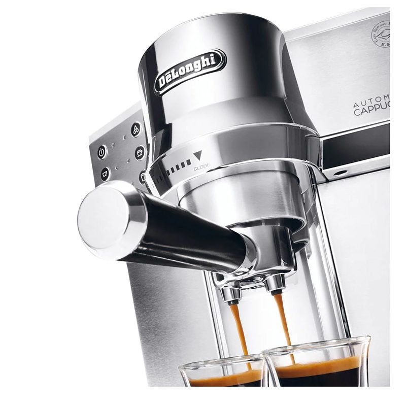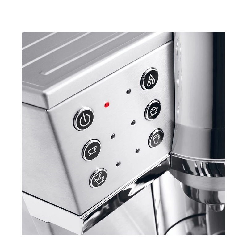 برند دلونگی برای تهیه انواع نوشیدنیهای پایه اسپرسو با بهروزترین تکنولوژیها به یاری شما آمده است. با کمک دکمههای تعبیه شده در این دستگاه توانایی گرفتن اسپرسو برای یک نفر یا اسپرسو سینگل و همچنین با تعویض پرتافیلتر برای ۲ نفر یا اسپرسو دوبل را دارید. تعبیه دکمههای جداگانه برای تولید کف شیر کاپوچینو، فوم شیر برای تهیه لاته ماکیاتو و دکمه آب جوش کار با این دستگاه را برای همه افراد با هر سطح مهارتی آسان کرده است. همیشه در نظر داشته باشید که بعد از استفاده دهانهای که شیر از آن خارج میشود را با استفاده از حولهای لطیف و بخار خود دستگاه پاک کنید. این امر موجب شده تا دهانه نازل بخار اسپرسوساز آسیب نبیند. در برنامههای پیشفرض قابلیت تنظیم دما، خاموش شدن خودکار و تنظیم سختی آب از طریق منو کاربری نیز وجود دارد. کنترل دمای انجام فرایند نیز در سه سطح کم، متوسط و زیاد قابل انجام خواهد بود. همچنین تنظیمات خاموش شدن خودکار دستگاه بعد از انجام فرایند و عدم استفاده پس از مدت ۱۵ دقیقه، ۷۵ دقیقه و ۳ ساعت امکانپذیر خواهد بود.