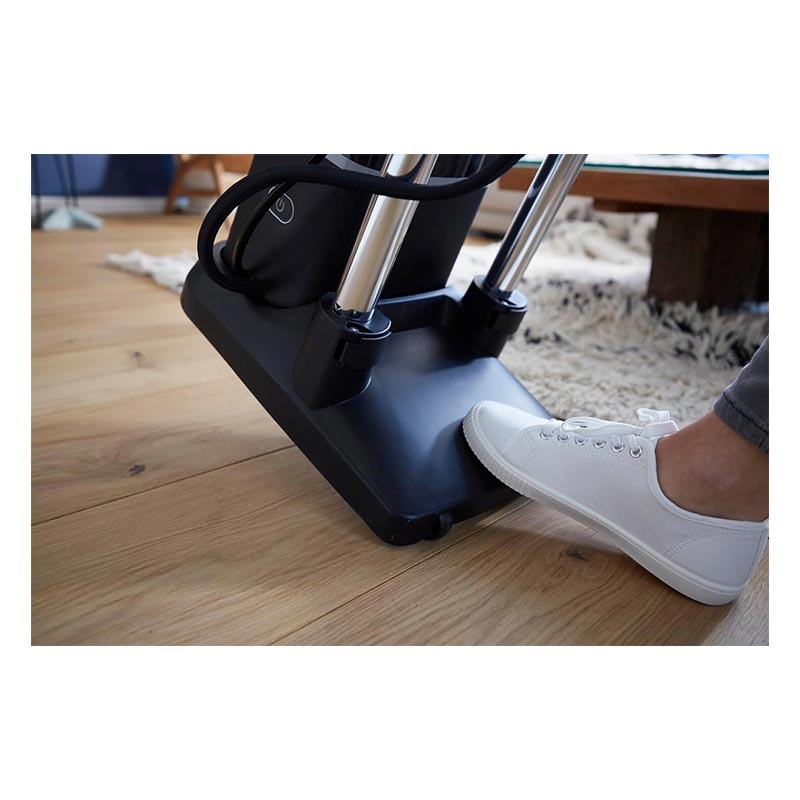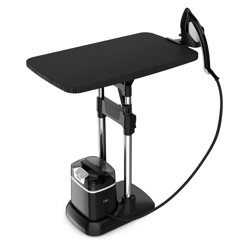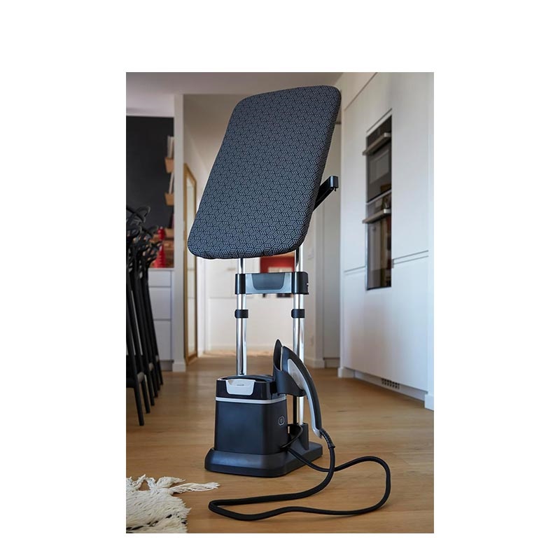 اتو بخارگر تفال مدل QT1510 دستگاهی کاربردی و باکیفیت برای انجام جلسات بخاردهی و رفع چین و چروک لباسها بهخصوص در زمانهای کوتاه و جلسات لجظه آخری است. این دستگاه بهلطف برخورداری از فناوری نوآورانه بخاردهی هوشمند، بدون نیاز به اعمال تنظیمات دستی، بخار لازم برای اتوکشی روی سطح تمامی پارچهها را مهیا کرده و موجب سهولت کامل فرایند میشود. این محصول قادر است علاوه بر رفع چروک پارچهها، با مراقبت از آن تا میزان ۹۹.۹ درصد از باکتریها را از بین برده و سطح لباسها را ضدعفونی کند. نکته ارزشمند در طراحی این دستگاه سری فلزی این اتو بخارگر به همراه دستگیره پلاستیکی مقاوم در برابر حرارت آن است که با دارا بودن وزنی تنها در حدود ۵۰۰ گرم راحتی انجام فرایند را دوچندان کرده و تجربهای لذتبخش را در اختیار کاربر قرار میدهد. یکی دیگر از امکانات این اتو بخارگر ایستاده تفال، تعبیه میز اتو برای آن است. این میز اتو قابلیت تنظیم در ۳ حالت را دارد؛ بنابراین بسته به موقعیت دلخواه امکان پهن کردن پارچه روی میز و بخاردهی آن را بهآسانترین شکل ممکن خواهید داشت. بخارگر ظرف مدت زمان کوتاه تنها ۷۰ ثاینه داغ و آماده به کار میشود. میزان فشار پمپ بخار دستگاه ۵ بار، بخاردهی مداوم آن ۳۵ گرم در دقیقه و بخاردهی لحظه آن نیز ۹۰ گرم در دقیقه است. گفتنی است ظرفیت مخزن آب قابل جابجایی دستگاه ۱ لیتر است