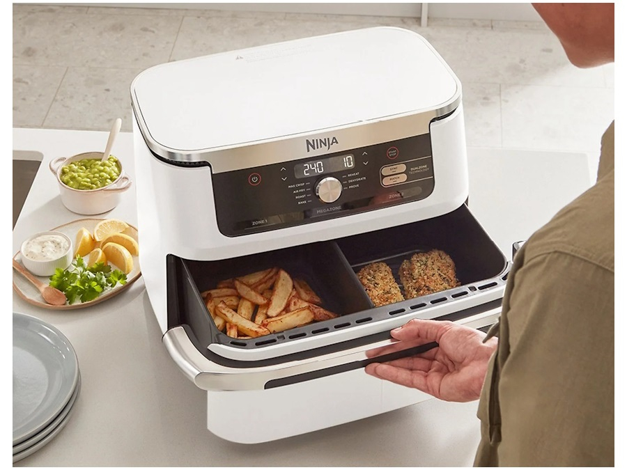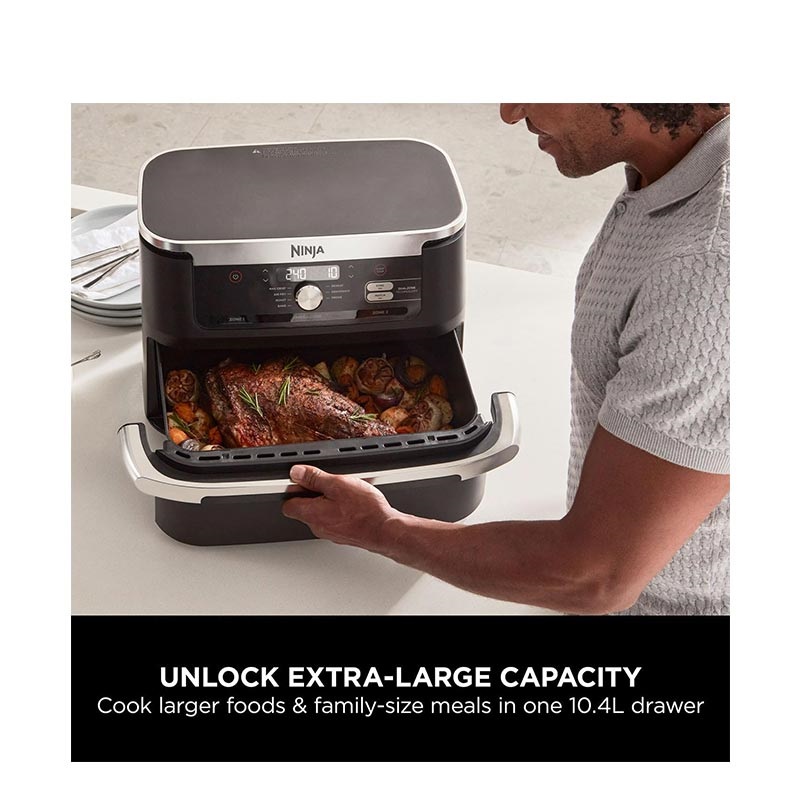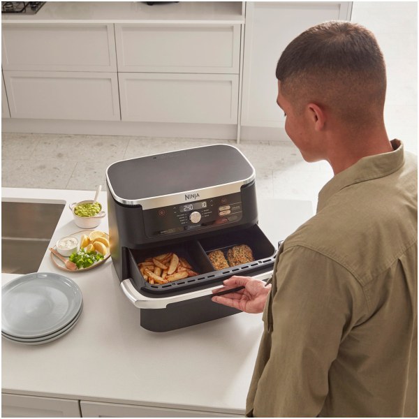 سرخ کن نینجا مدل AF500 با ظرفیت 10.4 لیتری خود آماده است تا در هر وعده حجم بالایی از مواد غذایی را تهیه کند. علاوه بر این میتوانید از طریق قراردهی قطعه جداکننده سبد را به دو بخش مساوی 5.2 لیتری تقیسم کرده، پس از اعمال برنامه پخت و تنظیمات دستی دما و زمان برای هر سبد، با همگامسازی (Sync) زمان اتمام آشپزی، وعدهها را بدون تقدم و تاخر در اختیار داشته باشید. همچنین میتوانید تنظیمات دلخواه خود را به صورت مشابه از طریق عملکرد Match روی هر دو سبد اعمال کنید. گفتنی است هر سبد 5.2 لیتری ظرفیتی معادل پخت یک مرغ 2 کیلوگرمی یا 1.5 کیلوگرم سیب زمینی سرخ کرده را دارد.