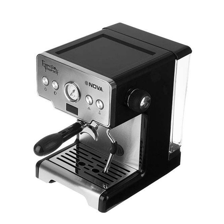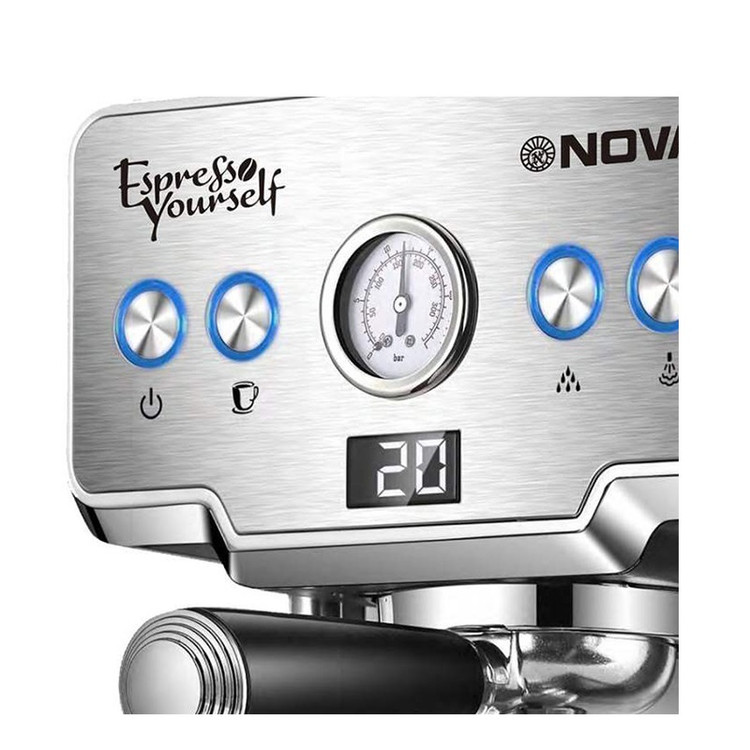 اسپرسوساز NOVA NCM-128EXPS با ظاهر کلاسیک و با بهرهگیری از طراحی جمع و جور و در عین حال با دوام بدنه از جنس استیل و توان مصرفی 1450 وات گزینهای مناسب برای تهیه یک نوشیدنی قهوه دلچسب خواهد بود. این دستگاه که قابلیت استفاده از پودر و یا پد قهوه را دارد و از مخزن آبی به ظرفیت 1.7 لیتر با برخورداری از سیستم تحت فشار قادر است فرایند تهیه قهوه را با بهترین عملکرد به انجام برساند. تعداد نازلهای این اسپرسوساز 2 عدد است بنابراین در هر بار اجرای فرایند دستگاه، امکان تهیه 2 فنجان نوشیدنی قهوه را خواهید داشت. کیفیت بالای این نازلها موجب شده طعم و کیفیت طبیعی و اصیل قهوه حفظ شود که این نکته برای طرفداران این نوشیدنی بسیار حائز اهمیت است. اسپرسوساز NCM-128EXPS نوا دارای دو فیلتر برای قهوه تک و قهوه دوبل است. این دستگاه دارای پمپ فشار بخار 15 باری که قابلیت تنظیم در درجات مختلف بسته به نیاز شما را خواهد داشت. همچنین نازل بخار که در کنار بخش مربوط به نازلهای قهوه تعبیه شده، شما را قادر به تهیه کف شیر و حتی شیر داغ میکند. بنابراین علاوه بر تهیه قهوه و حتی شیر گرم و آب جوش، امکان تهیه نوشیدنیهایی ترکیبی شیر و قهوه همچون کافه لاته، موکا و کاپوچینو نیز وجود دارد. قابلیت رسوب زدایی، وجود نمایشگر، تمیزکنندگی و شستشو، وجود کنترلر دکمه ای و چرخشی، جنس بدنه از استیل ضد زنگ و صفحه گرم نگهدارنده فنجانها از دیگر امکانات اسپرسوساز نوا مدل NOVA NCM-128EXPS محسوب میشوند.