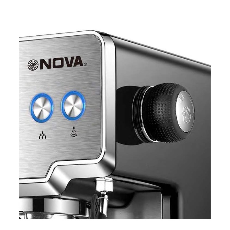 اسپرسوساز NOVA NCM-128EXPS با ظاهر کلاسیک و با بهرهگیری از طراحی جمع و جور و در عین حال با دوام بدنه از جنس استیل و توان مصرفی 1450 وات گزینهای مناسب برای تهیه یک نوشیدنی قهوه دلچسب خواهد بود. این دستگاه که قابلیت استفاده از پودر و یا پد قهوه را دارد و از مخزن آبی به ظرفیت 1.7 لیتر با برخورداری از سیستم تحت فشار قادر است فرایند تهیه قهوه را با بهترین عملکرد به انجام برساند. تعداد نازلهای این اسپرسوساز 2 عدد است بنابراین در هر بار اجرای فرایند دستگاه، امکان تهیه 2 فنجان نوشیدنی قهوه را خواهید داشت. کیفیت بالای این نازلها موجب شده طعم و کیفیت طبیعی و اصیل قهوه حفظ شود که این نکته برای طرفداران این نوشیدنی بسیار حائز اهمیت است. اسپرسوساز NCM-128EXPS نوا دارای دو فیلتر برای قهوه تک و قهوه دوبل است. این دستگاه دارای پمپ فشار بخار 15 باری که قابلیت تنظیم در درجات مختلف بسته به نیاز شما را خواهد داشت. همچنین نازل بخار که در کنار بخش مربوط به نازلهای قهوه تعبیه شده، شما را قادر به تهیه کف شیر و حتی شیر داغ میکند. بنابراین علاوه بر تهیه قهوه و حتی شیر گرم و آب جوش، امکان تهیه نوشیدنیهایی ترکیبی شیر و قهوه همچون کافه لاته، موکا و کاپوچینو نیز وجود دارد. قابلیت رسوب زدایی، وجود نمایشگر، تمیزکنندگی و شستشو، وجود کنترلر دکمه ای و چرخشی، جنس بدنه از استیل ضد زنگ و صفحه گرم نگهدارنده فنجانها از دیگر امکانات اسپرسوساز نوا مدل NOVA NCM-128EXPS محسوب میشوند.