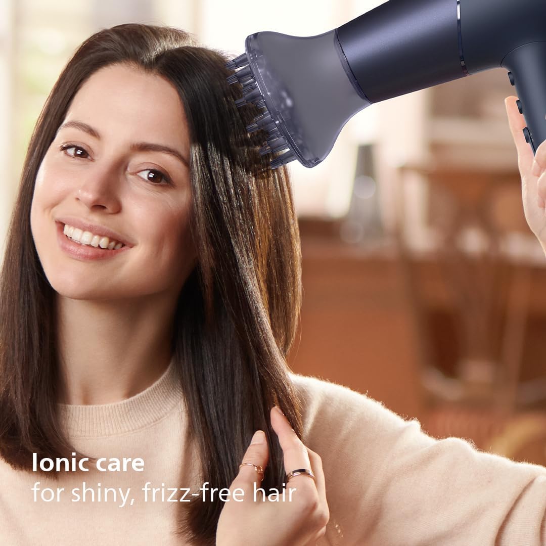 سشوار مو فیلیپس مدل BHD510 انتخابی مناسب برای انجام فرایند خشک کردن و حالت دهی روزانه موها و محصولی ارگونومیک از تولیدات این برند پرطرفدار است. توان 2300 واتی و قدرتمند موتور این سشوار با توزیع جریان هوایی قابل توجه تا حداکثر سرعت 110 کیلومتر بر ساعت قادر است فرایند خشک کردن موها را به بهترین شکل ممکن و همچنین تا میزان 20% سریعتر از سایر مدلهای پیش از خود به انجام برساند. انجام فرایند سشوار کشیدن با دمای بیش از اندازه و غیراستاندارد موجب ایجاد آسیبهای جدی بر روی تارهای مو خواهد شد؛ وجود فناوری هوشمند تشخیص دمای ThermoShield با طراحی منحصربهفرد، از طریق کنترل مداوم میزان دمای توزیع شده بر روی سطح مو و اعمال بهترین دمای ممکن، قادر است فرایند خشک کردن مو را به بهترین شکل و به سرعت صورت دهد. همچنین با توجه به تعبیه سیستم قدرتمند مراقبت یونی موسوم به 4x ionic بر روی این سشوار، در هربار انجام فرایند با تولید کردن 80 میلیون یون منفی بر روی سطح موها، علاوه بر انجام سریع فرایند خشک شدن آنها، از تارهای مویی براق و بدون وز لذت خواهید برد. تنظیمات حرارت و دما نیز به راحتی از طریق سشوار مو فیلیپس مدل BHD510 قابل اعمال است. اعمال تنظیمات و ترکیب سرعت و حرارت در 6 سطح متنوع و از طریق حرکت دادن کنترلر دکمهای تعبیه شده بر روی بدنه دستگاه به انجام میرسد. همچنین برای تکمیل دستیابی به استایل موردنظر خود تعبیه دکمه Cool Shot با تنظیم هوای خنک، جریان این هوا را بر روی موهای شما متمرکز خواهد کرد. سشوار مو فیلیپس مدل BHD510 دارای 1 سری متمرکزکننده 11 میلیمتری جریان هوا و همچنین یک سری دیسپانسر بوده که با اعمال حرارت هدایت شده برای انجام جزئیات حالت دهی مو مورد استفاده قرار میگیرد. طراحی خوش دست و ارگونومیک و سبک این دستگاه سبب شده کوچکترین زحمت و خستگی بر روی دستان شما ایجاد نشده و فرایند سشوار کشیدن به راحتی قابل انجام باشد. برخورداری سشوار مو فیلیپس مدل BHD510 از کابل 1.8 متری سبب شده، جابجایی و مانور حرکتی در حین انجام فرایند مناسب و در نتیجه امکان دسترسی به تمامی نقاط موهای سر آسان باشد.