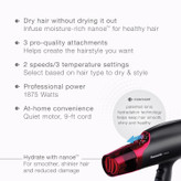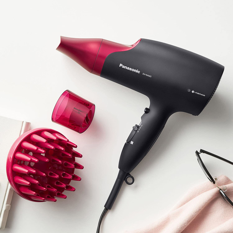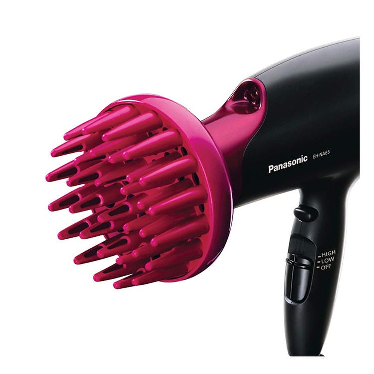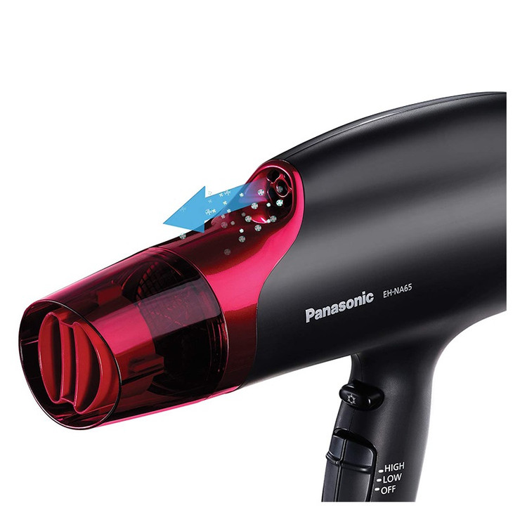 تجربهای لذت بخش از حفظ سلامت موها، با عملکردی بدون نقص و برخوردار از فناوریهای پیشرفته، همگی از مشخصههای استفاده از سشوار مو پاناسونیک مدل EH-NA65 به شمار میآید. به لطف تعبیه فناوری پیشرفته و انحصاری ™nanoe بر روی این سشوار با تامین خودکار رطوبت، با نفوذ این ذرات به کوتیکولهای تارهای مو، صافی هرچه بیشتر موها را منجر شده و همچنین موجب درخشندگی آن خواهد شد. همچنین وجود این فناوری از ایجاد خشکی بر روی پوست سر و ایجاد صدمههای ناشی از آن نیز جلوگیری میکند. از طرفی برس زدن روزانه موها موجب ایجاد آسیب به آنها خواهد شد. ذرات ™nanoe به اندازهای ریز هستند که با نفوذ به محافظ ریشه مو، کوتیکولهای مو را سفت کرده تا تارها در برابر ایجاد اصطکاک ناشی از فرایند برس کشیدن، مقاوم شوند. توان 2000 واتی موتور AC سشوار مو پاناسونیک مدل EH-NA65 در توزیع حرارت قدرتمند قادر است در سریعترین زمان ممکن اقدام به خشک کردن و حالت دهی موها کند. علاوه بر این موتور AC در مقایسه با نوع DC آن از طول عمر و دوام بالاتری نیز برخوردار است. امکان تنظیمات میزان سرعت و حرارت با استفاده از این سشوار وجود دارد؛ کنترل سرعت در 3 سطح و همچنین کنترل دمایی در 4 سطح قابل اعمال است. علاوه بر این با تعبیه دکمه Cool-shot تثبیت نهایی استایل موهای خود را به راحتی صورت خواهید داد. تعداد 3 عدد سری قابل پیوست بر روی دهانه خروجی سشوار EH-NA65 پاناسونیک در اقلام جانبی قرار گرفته است؛ یک سری با دهانهای گرد و توزیع مرکب جریان قوی و ملایم باد، یک سری متمرکزکننده جریان حرارت به منظور سرعت بخشیدن فرایند خشک کردن موها و یک سری دیسپانسر بهمنظور حالت دهی و ایجاد فرم بر روی موها اقلام جانبی این دستگاه را تشکیل میدهند. قسمت عقبی سشوار دارای فیلتر توری قابل تفکیک است که با توجه به ویژگی مکش این بخش و ایجاد گرد و غبار بر روی آن، قابلیت نظافت این فیلتر به آسانی وجود دارد. قلاب تعبیه شده در بخش پایینی دسته سشوار مو پاناسونیک مدل EH-NA65 امکان قرارگیری دستگاه به صورت آویز را مهیا کرده است.