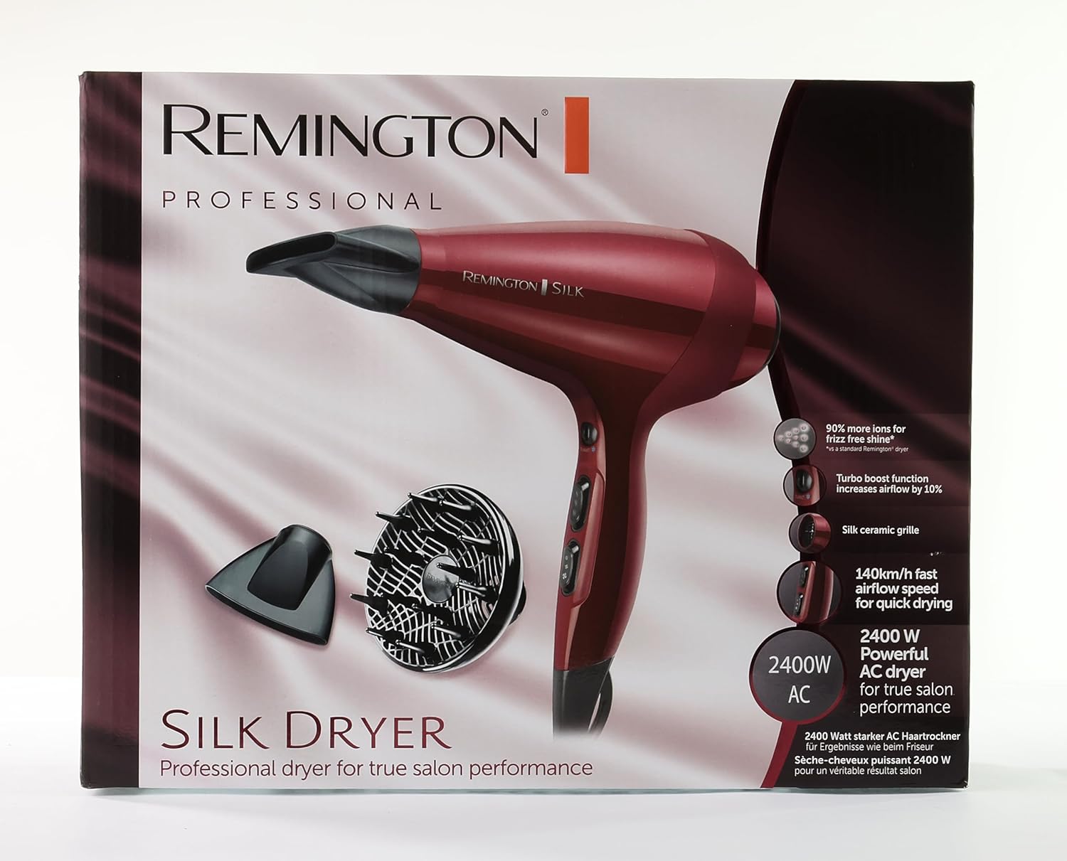 سشوار مو رمینگتون مدل REMINGTON AC9096 دستگاهی خوش طراحی و زیبا از سری Pro گزینهای ایدهآل برای انجام فرایند روزمره خشک کردن و حالت دهی به موها به شمار میآید. این سشوار به لطف وجود فناوری پیشرفته SILK Ceramic و به لطف تعبیه موتور AC قدرتمند 2400 واتی با توزیع جریان هوا تا سرعت 140 کیلومتر بر ساعت، فرایند خود را 50 درصد سریعتر از مدلهای مشابه به انجام میرساند. برخورداری از روکش سرامیکی پیشرفته بر روی سیستم گرم کننده با افزایش 90 درصدی خاصیت محافظت یونی فرایند سشوار کشیدن با ایجاد درخشندگی هرچه بیشتر بر روی تارهای مو به انجام رسیده و از ایجاد وز بر روی آن جلوگیری خواهد شد. علاوه بر این، پوشش سرامیکی گفته شده از سلامت مو در برابر حرارت نیز محافظت میکند. تعبیه موتور AC بر روی سشوار مو AC9096 رمینگتون به این دستگاه قدرت ویژهای را به نسبت موردهای مشابه با موتورهای DC بخشیده است. این موتور علاوه بر برخورداری از کیفیت و قدرت بالا، از دوام و طول عمر قابل توجهی نیز برخوردار است. طراحی جمعوجور این سشوار با بهرهگیری از وزنی سبک و طراحی ارگونومیک فرایند سشوار کشیدن و حالت دهی به موها را به راحتی و بدون ایجاد خستگی بر روی دستان شما همراه میکند. به کمک دکمههای قرارگرفته بر روی دسته سشوار مو رمینگتون مدل AC9096 به آسانی تنظیمات مربوط به دما و حرارت صورت میگیرد؛ تعداد سه سطح تنظیم حرارت و سه سطح تنظیم سرعت با استفاده از این سشوار قابل کنترل است. با استفاده ازعملکرد توربو قادر به افزایش سرعت جریان هوا تا میزان 10 درصد برای خشک شدن سریعتر موهای خود خواهید بود. علاوه بر این عملکرد cold shot کمک میکند تا تثبیت استایل نهایی بر روی حالت موهای خود را به انجام برسانید. تعداد سریهای مجزای قابل اتصال به این دستگاه 3 عدد است؛ یک سری 7 میلیمتری متمرکزکننده جریان هوا، یک سری 11 میلیمتری متمرکزکننده جریان هوا و یک دیسپانسر حالت دهنده و حجم دهنده مو اقلام قابل پیوست بر روی سشوار مو رمینگتون مدل AC9096 را تشکیل میدهند. فیلتر هوای دستگاه به راحتی امکان تفکیک و نظافت را دارا خواهد بود، بنابراین جریان هوای خروجی پس از مدتها استفاده همچنان به قدرت روز ابتدایی باقی خواهد ماند. قلاب تعبیه شده در بخش انتهایی دسته، قرارگیری سشوار به صورت آویز را به آسانی مهیا کرده است. همچنین برخورداری از کابل برق 3 متری قدرت مانور با سشور AC9096 رمینگتون را بالا میبرد.
