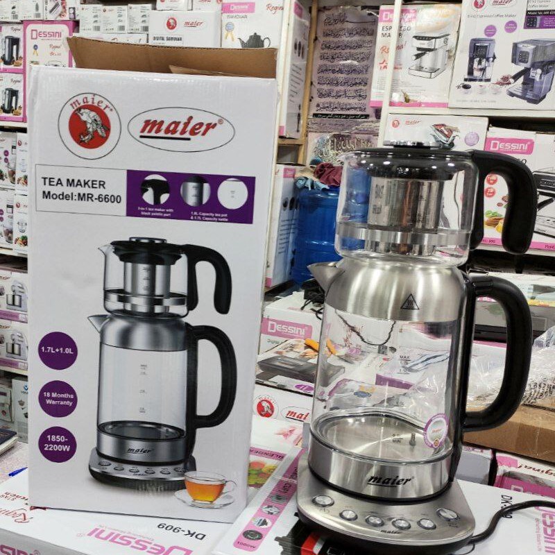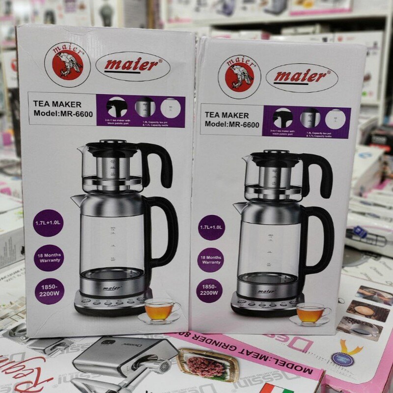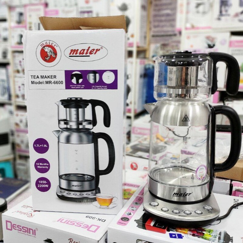 مشخصات کلی رنگ استیل مشکی رده مصرف انرژی A توان 1850 – 2200 وات جنس بدنه کتری شیشه و استیل ظرفیت کتری 1.7 لیتر جنس بدنه قوری شیشه (پیرکس) ظرفیت قوری 1 لیتر جنس فیلتر استیل ضدرنگ جدا شدنی نوع کنترل دیجیتالی نمایشگر LED دارد امکان تنظیم درجه حرارت دارد خاموش شدن خودکار دارد سیستم قطع کن خودکار دارد گرم نگهدار دارد نشانگر سطح آب دارد قابلیت چرخش 360 درجه دارد کلید روشن / خاموش دارد محفظه برای جمع كردن سیم برق دارد