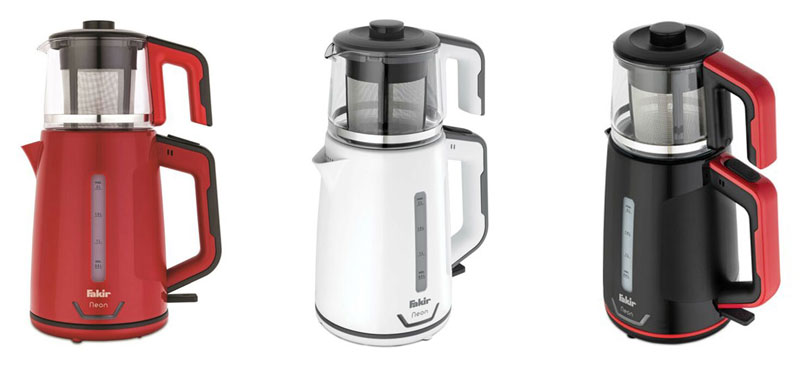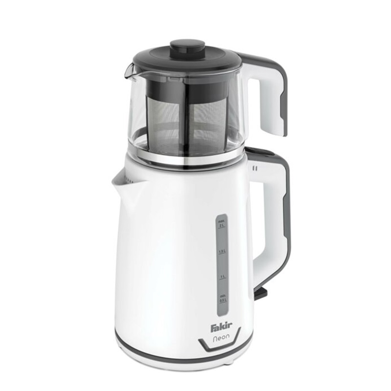 چای ساز فکر مدل FAKIR NEON دستگاهی کارا و همچنین زیبا در جهت تهیه روزمره این نوشیدنی پرطرفدار بوده و گزینهای ایدهآل برای آشپزخانه شما به حساب میآید. نیاز به صرف چای در وعدهها و میان وعدههای روزانه نیاز به وجود دستگاهی جهت انجام سریع فرایند دم آوری آن را در هر محیط اعم از منزل و یا محیط کار بیش از همیشه ایجاب کرده است. توان 1800 واتی این چای ساز با برخورداری از سیستم گرمایشی المنت حرارتی مخفی فرایند دم آوری چای را برای دستیابی به بهترین نتایج ممکن به انجام میرساند. مکانیزم کارکرد چای ساز NEON فکر از طریق قرارگیری قوری بر روی کتری صورت میپذیرد. بخش مربوط به کتری دارای ساختی از متریال پلاستیکی و مدرج بوده که حجمی به میزان 2 لیتر آب را در خود جای میدهد. قسمت دیگر این چای ساز مربوط به قوری است که از متریال شیشه ساخته شده و دارای میزان حجم 1 لیتر است. دسته هر دو قسمت دستگاه شامل کتری و قوری نیز از پلاستیک مقاوم در برابر حرارت تشکیل شده است. انجام فرایند جوش آمدن آب از طریق فشردن دکمه تعبیه شده در قسمت بالایی دسته کتری صورت میگیرد. برای طرفداران نوشیدنی چای عطر و رایحه این نوشیدنی از درجه اهمیت بالایی برخوردار است؛ تعبیه فیلتر استیل در قوری چای ساز فکر مدل NEON ضمن جلوگیری از نفوذ تفاله چای به داخل نوشیدنی، عطر و طعم واقعی این نوشیدنی را حفظ خواهد کرد. با توجه به قابلیت گرم نگهدارندگی این چای ساز قادرید نوشیدنی خود را تا مدت زمان بیشتری پس از فرایند دم آمدن در دمای ایدهآل سرو و نوشیدن حفظ کنید. همچنین پایه نگهدارنده کتری با قابلیت چرخش 360 درجهای امکان دسترستی آسان به تمامی نقاط آن را به راحتی میسر میکند. در صورت نبود آب کافی درون کتری سیستم ایمنی چای ساز فکر مدل NEON با قطع فرایند سیستم گرمایشی، عملکرد دستگاه را متوقف کرده و چای ساز را به طور خودکار خاموش میکند. جابجایی و حمل این چای ساز با توجه به وزن سبک آن بهآسانی و بدون دردسر قابل انجام است. وجود محفظه مربوط به جمع آوری کابل برق نظم قرار دهی دستگاه را در هر قسمت دلخواه از آشپزخانه منجر میشود. تمامی بخشهای پلاستیکی به کار رفته در ساخت این چای ساز فاقد ماده شیمیایی مضر BPA بوده که این امر سلامت نوشیدنی تهیه شده را تضمین میکند. امکان شستشوی آسان دستگاه پس از هربار انجام فرایند دیگر ویژگی چای ساز فکر مدل FAKIR NEON به شمار میآید. گفتنی است این چای ساز در رنگهای سفید و مشکی-بنفش ساخته شده و به بازار عرضه میشود.