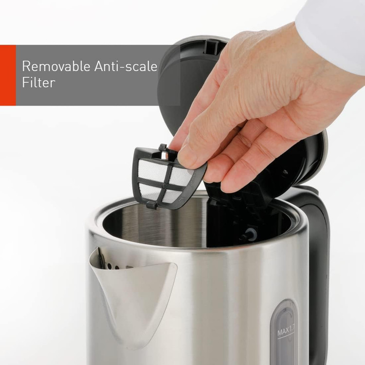 فیلتر روی دهانه، رسوب آهکی را که هنگام جوشاندن آب ایجاد می شود، جذب می کند و از ریختن رسوبات جلوگیری می کند تا بتوانید هر روز با خیال راحت از نوشیدنی خود لذت ببرید. درب آن با فشار دادن دکمه روی دسته با یک دست باز می شود. طراحی کتری باعث می شود به راحتی آن را با آب پر کنید.