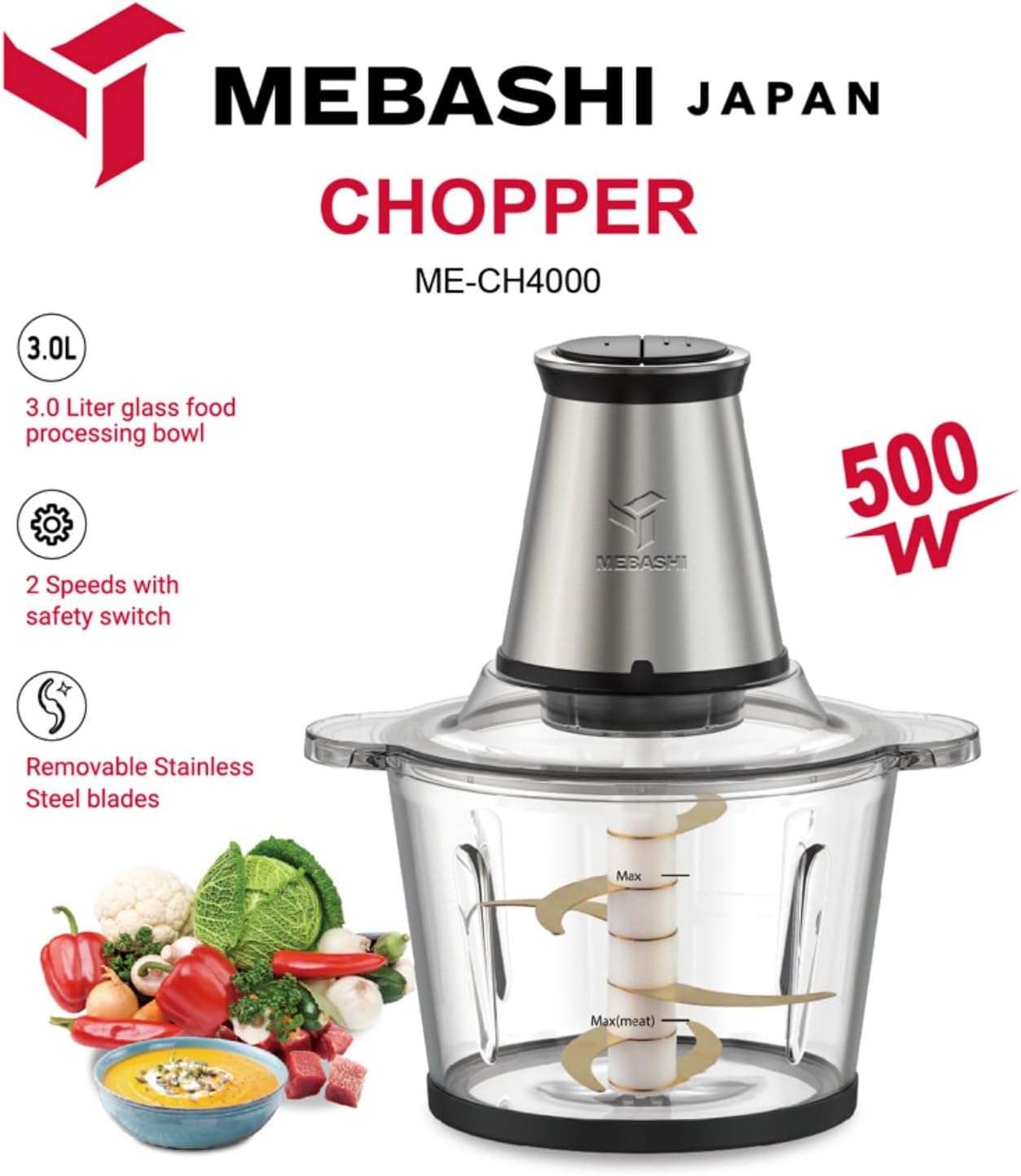 مشخصات کلی برند مباشی مدل 4000 توان مصرفی 500 وات ظرفیت 3 لیتر جنس بدنه پیرکس جنس تیغه تتانیوم تنظیمات سرعت دو سرعته مناسب برای خورد کردن انواع گوشت/سبزیجات و حبوبات و....