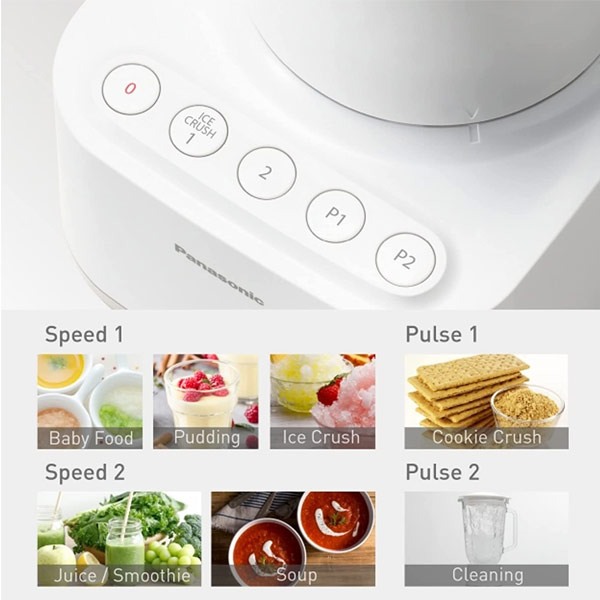 از اسموتی های خوشمزه، سالم، میوه و سبزیجات لذت ببرید! ترکیبی از چهار دنده در سطح داخلی پارچ و تیغه های بهینه شکل، مواد غذایی را به صورت پویا ترکیب می کنند و اجازه می دهند غذاهای سفت و کوچک به طور یکنواخت خرد شوند. مخلوط کن پاناسونیک می تواند مواد غذایی را حتی در مقادیر کم به طور نسبتاً تمیز با چرخش غذا مخلوط کند. تیغه منحصر به فرد و موتور قدرتمند 800 وات شکل بهینه پارچ باعث گردش پویا می شود .مواد بلند شده به دیواره پارچ برخورد کرده و روی تیغه های پایینی می افتند. به لطف شکل منحصر به فرد پارچ مخروطی، مواد تشکیل دهنده بلند شده و در کناره آن پخش می شوند، می افتند و در مرکز قرار می گیرند.