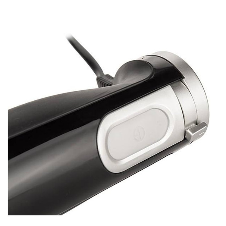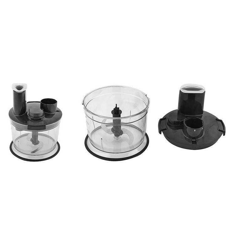 پره و تیغههای دستگاه از استیل ساخته شده و ضدزنگ هستند. به جز میلهی فلزی، سایر قسمتهای بدنهی گوشتکوب از پلاستیک مرغوب ساخته شده که باعث شده در مجموع دستگاه وزن زیادی نداشته باشد و دست را اذیت نکند. دستهی گوشتکوب طراحی ارگونومیکی دارد و به خوبی در دست جای میگیرد و قوسی که در طراحی آن به کار رفته از لغزیدن و خروج دسته از دست شما جلوگیری میکند. ظرف غذاساز شفاف و پلاستیکی است و 1.2 لیتر گنجایش دارد. برای استفادهی آسان از قطعات همزن و گوشتکوب برقی یک لیوان باریک و بلند با ظرفیت 700 میلیلیتر هم در نظر گرفته شده است. گفتنی است امکان شستوشوی میلههای استیل و ظرف غذاساز در ماشین ظرفشویی وجود دارد.