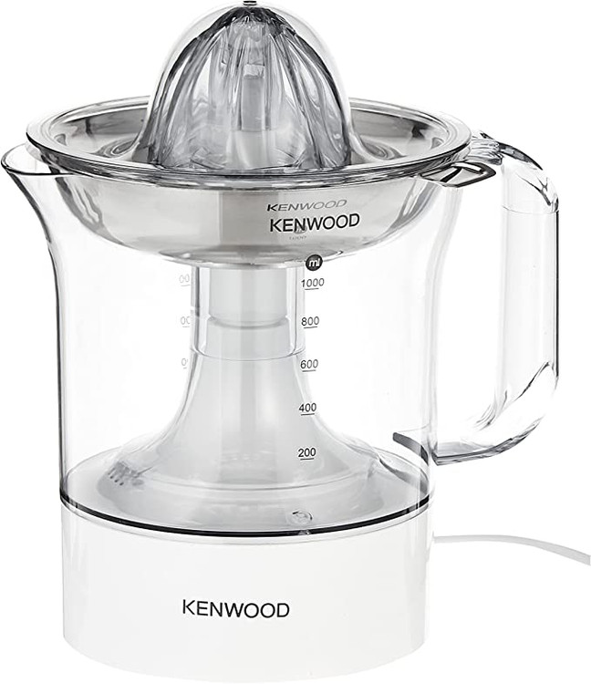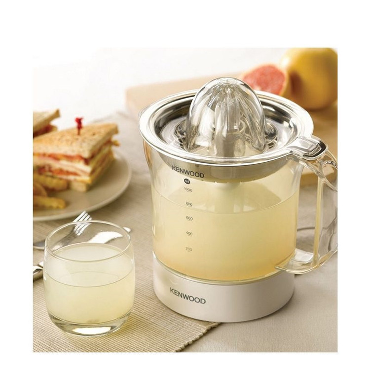 آب مرکبات گیری JE290 کنوود دستگاهی خوشطراحی، کارا و ایدهآل بوده که شما در تهیه نوشیدنی خوش طعم و طبیعی خود یاری میکند. لزوم وجود آب مرکباتی چون آبلیمو و آب پرتقال در سبد غذایی هر خانوار موجب شده تا استفاده از دستگاه آب مرکبات گیری در هر خانه به امری رایج تبدیل شود. طراحی زیبا و شکیل و همچنین ابعاد جمعوجور آب مرکبات گیری JE290 کنوود امکان قرارگیری و استفاده آن را در هر بخش از آشپزخانه به آسانی میسر کرده است. توان مصرفی 60 واتی این دستگاه آماده است تا فرایند آبگیری مرکبات را به طور روزانه برای دستیابی به بهترین نتیجه ممکن صورت دهد. انجام فرایند آبگیری مرکبات با فشردن میوه بر روی بخش مخروط پلاستیکی دستگاه و متعاقبا به چرخش در آمدن این قطعه از سر گرفته میشود. پس از آن با گذر آب مرکبات موردنظر از فیلتر یا همان غربال پلاستیکی و جلوگیری از ورود تفالهها به داخل محفظه، نوشیدنیای با کیفیت را در اختیار خواهید داشت. وجود درپوش پلاستیکی شفاف موجب شده ضمن نظارت به فرایند آبگیری مرکبات، از ورود گرد و غبار و آلودگی به داخل محفظه دستگاه جلوگیری شود. مخزن این آب مرکبات گیری تا میزان 1 لیتر نوشیدنی را ذخیزه خواهد کرد. با مقایسه قیمت آب مرکبات گیری کنوود با توجه به کیفیت دستگاه به نسبت سایر مدلها و همچنین از بعد دیگر خرید سالیانه آب مرکبات صنعتی و غیر طبیعی با هزینههای گزاف، خرید آب مرکبات گیری کنوود امری منطقی و مقرون به صرفه به نظر میآید. گفتنی است تمامی بخشهای پلاستیکی در ارتباط با مرکبات فاقد مواد شیمیایی BPA بوده که این امر سلامت آب مرکبات حاصله را متضمن میشود. وجود محفظهای برای جمعآوری سیم برق، برخورداری از پایههای ضدلغزش جهت جلوگیری از حرکت دستگاه در حین انجام فرایند و در نهایت امکان شستشوی آسان قطعات پس از هربار انجام فرایند آبگیری دیگر ویژگیهای آب مرکبات گیری کنوود مدل KENWOOD JE290 به شمار میآید.