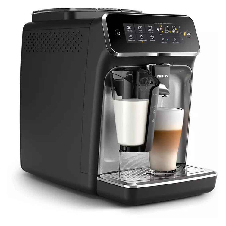 بهرهگیری از طراحی جذاب و تکنولوژیهای به روز از بارزههای اسپرسوساز فیلیپس مدل PHILIPS EP3246 هستند. از ابتداییترین فرایند تهیه یک فنجان قهوه یعنی آسیاب دانهها گرفته تا تهیه یک نوشیدنی خوش طعم همگی به کمک این دستگاه به صورت تمام اتوماتیک قابل انجام است. بهرهگیری این دستگاه از توان 1500 وات و مخزن آب 1.8 لیتری، به لطف وجود سیستم Aroma Extract با ایجاد تعادل بهینه بین دمای دمآوری و عطر قهوه با نگهداری دمای آب بین 90 و 98 درجه سانتیگراد تهیه نوشیدنی موردنظر با بالاترین کیفیت ممکن را تضمین میکند. تعبیه یک مخزن شیر 265 میلیلیتری موسوم به LatteGo به همراه میزان فشار بخار 15 بار از طریق همراه کردن شیر و هوا به وسیله سرعت بالا در این محفظه اقدام به تهیه کف شیری بسیار مطلوب و خوشطعم میکند. این امر به شما امکان تهیه انواع نوشیدنیهای مرکب از قهوه و شیر همچون کاپوچینو و لاتهماکیاتو را خواهد داد. با توجه به امکان تفکیک آسان این مخزن از دستگاه، شستشوی این قطعه تنها در 15 ثانیه قابل انجام است. پنل لمسی دستگاه شامل 6 برنامه پیش فرض برای تهیه انواع نوشیدنی قهوه است؛ تنها با فشردن یک دکمه انواع نوشیدنی و بهترین سطح کیفی را در کوتاهترین زمان ممکن تهیه خواهید کرد. جنس مخزن آسیاب دستگاه از سرامیک بادوام بوده که با حفظ عطر طبیعی قهوه حاضر است تا میزان 20000 فنجان پودر قهوه را تهیه کند. میزان آسیاب دانههای قهوه بسته به مقدار دلخواه شما در 12 درجه قابل تنظیم خواهد بود. وجود دو نازل امکان تهیه دو فنجان قهوه را مهیا میکند. نگران وجود رسوب در آب نباشید؛ تعبیه فیلتر AquaClean در مخزن آب موجب شده این قطعه نیازی به رسوب زدایی مداوم دستگاه نداشته و همواره آب را شفاف نگه میدارد بطوریکه تا حداکثر 5000 فنجان احتیاجی به فرایند رسوب زدایی نخواهد داشت. همچنین عملکرد خودکار دستگاه با قابلیت تنظیم میزان سختی آب شما را در مواقعی که دستگاه نیازمند انجام رسوب زدایی است، مطلع خواهد کرد. وجود صفحه گرم نگهدارنده فنجانها، سیستم ذخیره انرژی و نظافت آسان دستگاه به لطف قابلیت تفکیک قطعات و امکان شستشوی آنها در ماشین ظرفشویی از دیگر امکانات اسپرسوساز فیلیپس مدل PHILIPS EP3246 به شمار میآید.