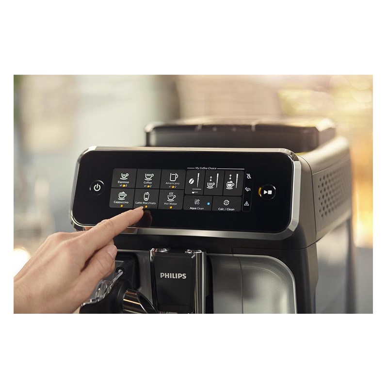 بهرهگیری از طراحی جذاب و تکنولوژیهای به روز از بارزههای اسپرسوساز فیلیپس مدل PHILIPS EP3246 هستند. از ابتداییترین فرایند تهیه یک فنجان قهوه یعنی آسیاب دانهها گرفته تا تهیه یک نوشیدنی خوش طعم همگی به کمک این دستگاه به صورت تمام اتوماتیک قابل انجام است. بهرهگیری این دستگاه از توان 1500 وات و مخزن آب 1.8 لیتری، به لطف وجود سیستم Aroma Extract با ایجاد تعادل بهینه بین دمای دمآوری و عطر قهوه با نگهداری دمای آب بین 90 و 98 درجه سانتیگراد تهیه نوشیدنی موردنظر با بالاترین کیفیت ممکن را تضمین میکند. تعبیه یک مخزن شیر 265 میلیلیتری موسوم به LatteGo به همراه میزان فشار بخار 15 بار از طریق همراه کردن شیر و هوا به وسیله سرعت بالا در این محفظه اقدام به تهیه کف شیری بسیار مطلوب و خوشطعم میکند. این امر به شما امکان تهیه انواع نوشیدنیهای مرکب از قهوه و شیر همچون کاپوچینو و لاتهماکیاتو را خواهد داد. با توجه به امکان تفکیک آسان این مخزن از دستگاه، شستشوی این قطعه تنها در 15 ثانیه قابل انجام است. پنل لمسی دستگاه شامل 6 برنامه پیش فرض برای تهیه انواع نوشیدنی قهوه است؛ تنها با فشردن یک دکمه انواع نوشیدنی و بهترین سطح کیفی را در کوتاهترین زمان ممکن تهیه خواهید کرد. جنس مخزن آسیاب دستگاه از سرامیک بادوام بوده که با حفظ عطر طبیعی قهوه حاضر است تا میزان 20000 فنجان پودر قهوه را تهیه کند. میزان آسیاب دانههای قهوه بسته به مقدار دلخواه شما در 12 درجه قابل تنظیم خواهد بود. وجود دو نازل امکان تهیه دو فنجان قهوه را مهیا میکند. نگران وجود رسوب در آب نباشید؛ تعبیه فیلتر AquaClean در مخزن آب موجب شده این قطعه نیازی به رسوب زدایی مداوم دستگاه نداشته و همواره آب را شفاف نگه میدارد بطوریکه تا حداکثر 5000 فنجان احتیاجی به فرایند رسوب زدایی نخواهد داشت. همچنین عملکرد خودکار دستگاه با قابلیت تنظیم میزان سختی آب شما را در مواقعی که دستگاه نیازمند انجام رسوب زدایی است، مطلع خواهد کرد. وجود صفحه گرم نگهدارنده فنجانها، سیستم ذخیره انرژی و نظافت آسان دستگاه به لطف قابلیت تفکیک قطعات و امکان شستشوی آنها در ماشین ظرفشویی از دیگر امکانات اسپرسوساز فیلیپس مدل PHILIPS EP3246 به شمار میآید.