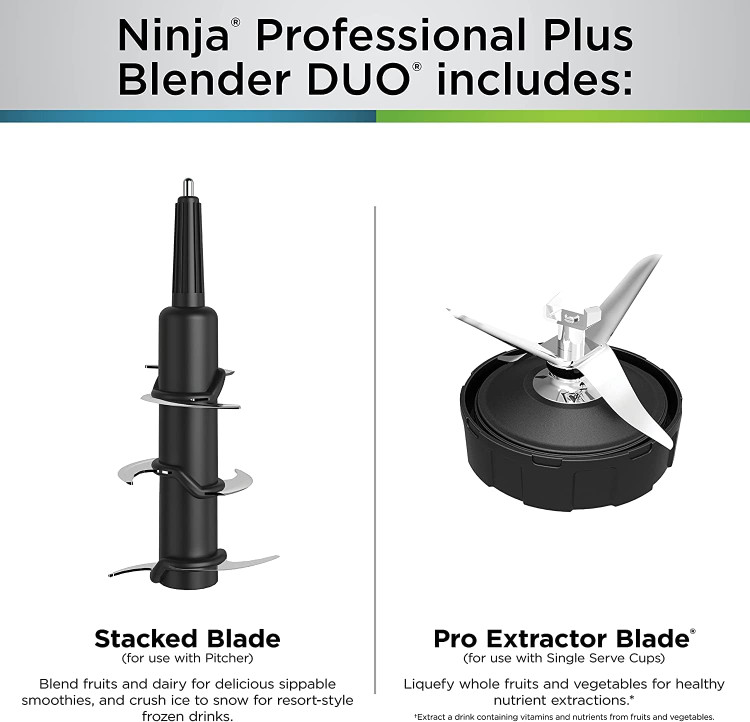 | اجزای شامل | (2) 24 اونس. فنجان های To-Go با درب دهانه، 72 اونس. پارچ خرد کردن کل با درب، مونتاژ تیغه روی هم، راهنمای الهام بخش دستور غذا، پایه موتور 1400 پیک وات |